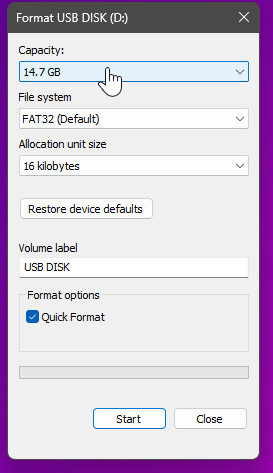 "Quick Format" a flash drive to FAT32 on Windows