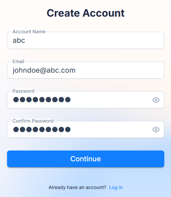 Create an Account Name. The account name must be unique. A common and recommended choice is to use your organization's domain name. For instance, if your domain is "abc," then "abc" would also be a suitable account name.