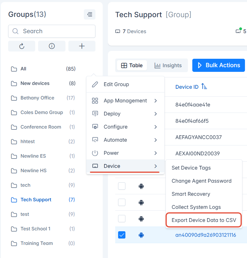 4. Click Device -> Export Device Data to CSV