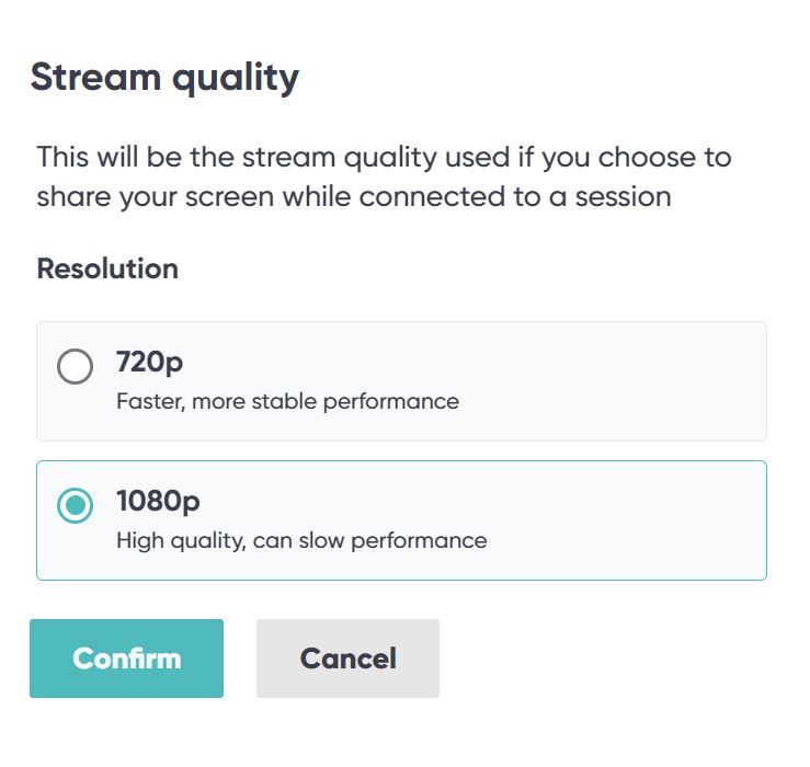 1. In the web version, go to displaynote.com/join and select stream quality.