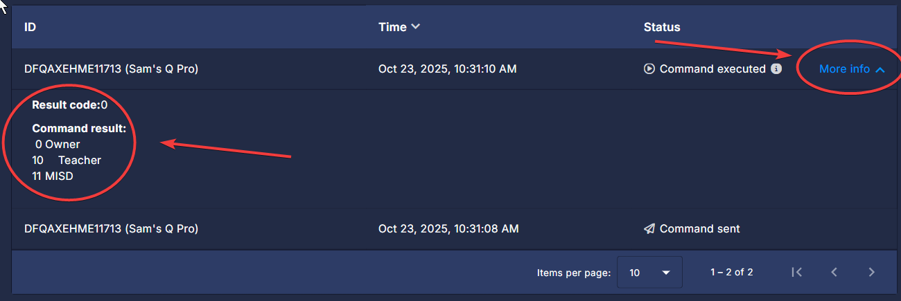 To confirm the user ID for the target username, you can utilize the Remote Execute command to identify the user numbers associated with the existing profiles on the panel.
